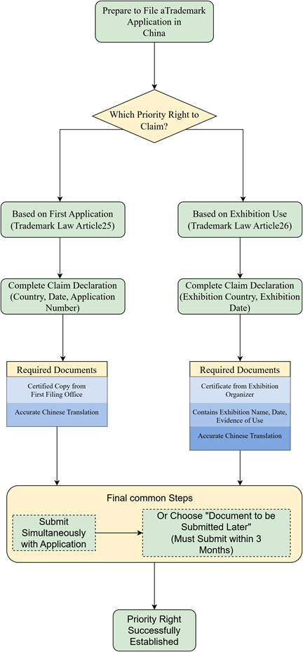 China's trademark priority system primarily consists of two types. The operational process is summarized in the flowchart below, providing a clear overview.